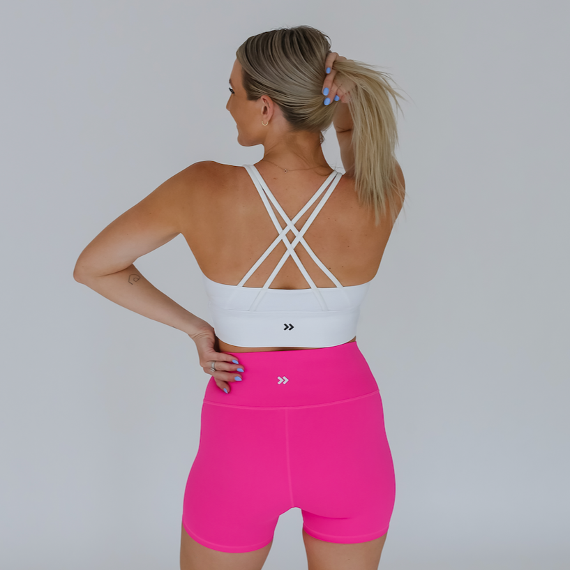 The sports bra you’ll forget is on is finally here! A customer favourite item with an ultra soft comfortable fabric, which is both functional while still having medium support. Fun creative crossed back straps and removable cups. A must have bra in all colours. Also available in navy, lilac, black and peony!